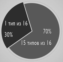 Зато ЛИЭ, самый востребованный и универсальный тип людей — это примерно 30% интересных работодателям кандидатов. Три верхних типа — это более 60%, а 5 или 6 — около 80%. Что же делать остальным 10-11 типам людей, которых должно быть не меньше половины даже с учетом того, что интровертов рождается меньше?
