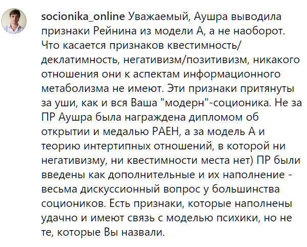 А есть ли у традиционных социоников, авторов популярных описаний проверенная по речи прецедентная база, или одни домыслы — «как завещала гениальная Аушра» (